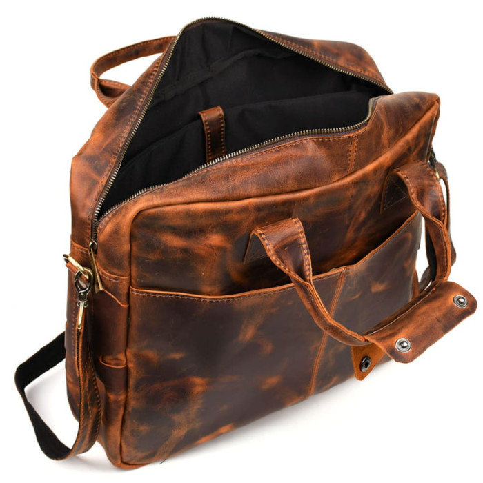 Сумка RY-1019-3md від TARWА передбачає повсякденне носіння ноутбука до 17 дюймів включно, а також документів, папок, безлічі речей. Виготовлена із натуральної матової шкіри. Колір теракотовий. Фурнітура та логотип бренду надає виробу ексклюзивності.