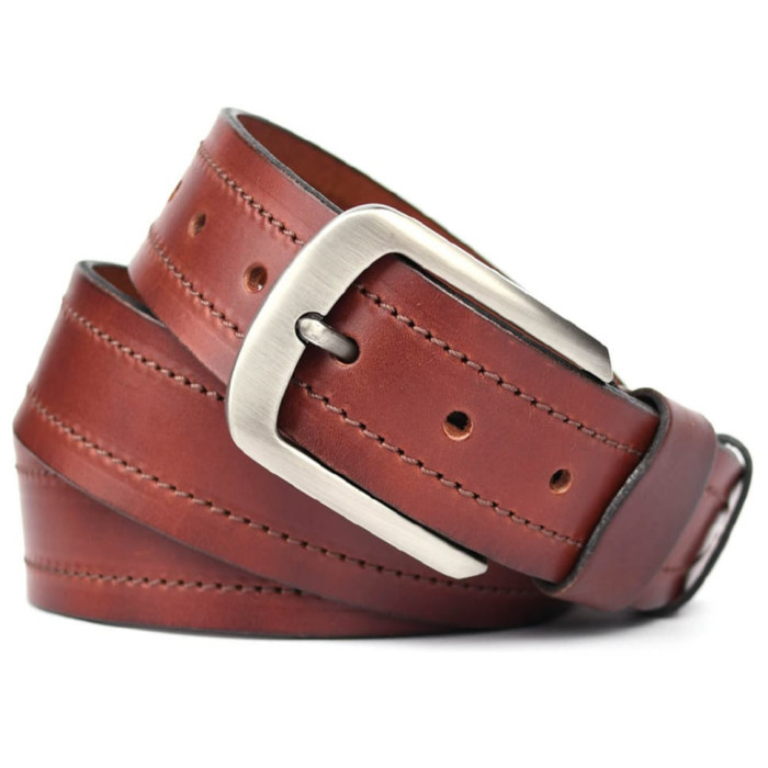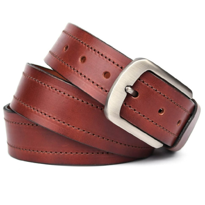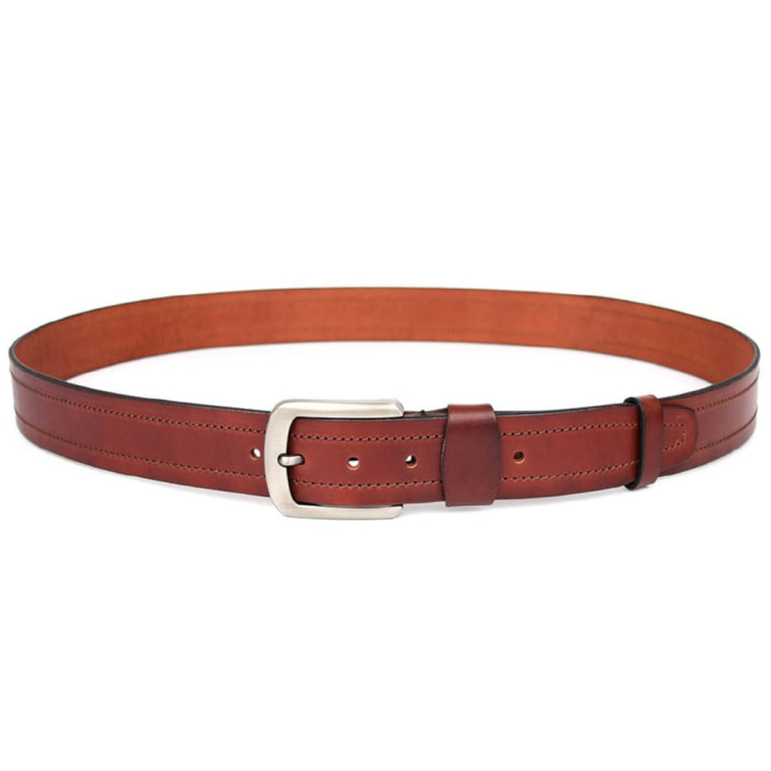 Ремінь шкіряний коньячний з рядком 40мм чоловічий Limary sk400221. Гладке полотно, рядок на 1/4
