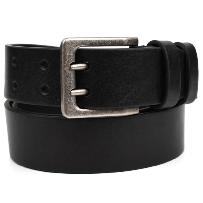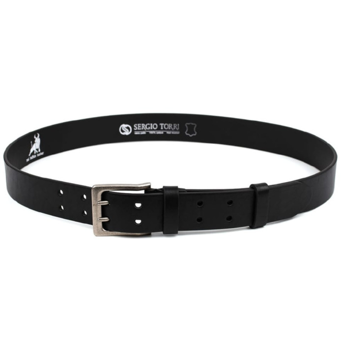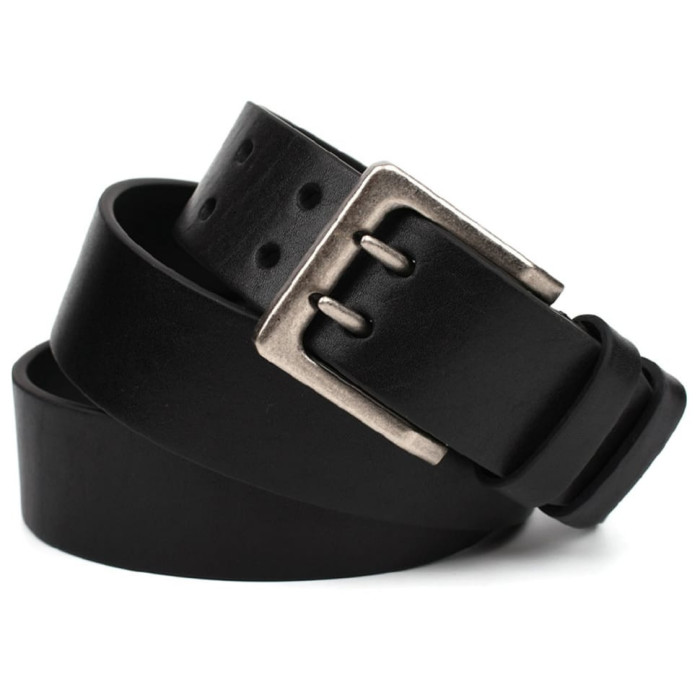 Ремінь зі шкіри буйвола st044624-1 чорний 40мм, офіцерський, на два язички Ремінь підходить як для штанів, так і для джинсів. Колір шкіри – чорний. Пряжка класична, металева