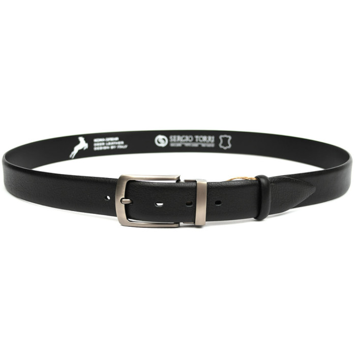 Ремінь зі шкіри оленя 35мм чорний класична пряжка Sergio Torri ST2027D
