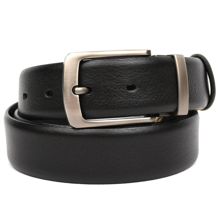 Ремінь підходить як для штанів, так і для джинсів. Колір шкіри – чорний. Пряжка класична, металева