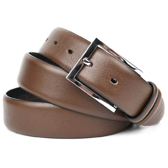 Ремінь зі шкіри оленя 35мм коричневий, класична пряжка st228333 Ремінь підходить як для штанів, так і для джинсів. Колір шкіри – коричневий. Пряжка класична, металева