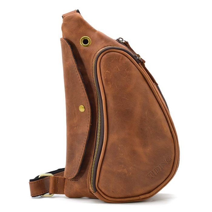 Слінг 3026 шкіряний на одне плече має у своєму розпорядженні різноманіття кишень різної форми та об'єму, що дає більше можливостей для застосування. Шкіра, що регулюється по довжині. Всередині щільна текстильна підкладка