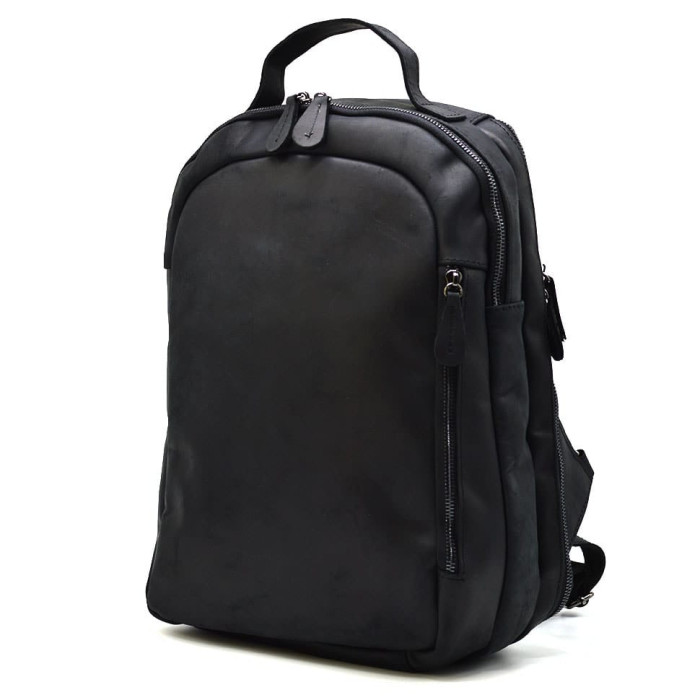 Рюкзак з нубуку, ексклюзивна модель, чорний Tiding tid30722 Рюкзак із нубуку, ексклюзивна модель Матеріал: натуральна теляча шкіра Розмір: 40(H)*17(W)*30(L) cm Довжина шлейок: 54-65 cm Колір чорний Вага: 1 кг Фурнітура: метал відтінку латуні Зовнішня застібка: металеві блискавки Усередині обшитий міцної тканиною Опис: два автономні відділення, всередині бічна кишеня на блискавці Зовні на тильній та передній стороні рюкзака: кишеньки на блискавці Сумісна з лептопами до 16" включно Вінтажному стилі, фешенебельний вигляд. М'яка зручна шкіра, що дихає Зручні широкі шлейки, міцна шкіряна ручка