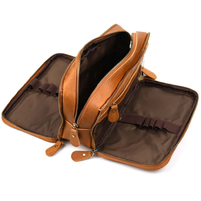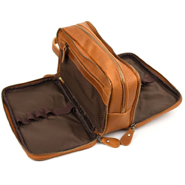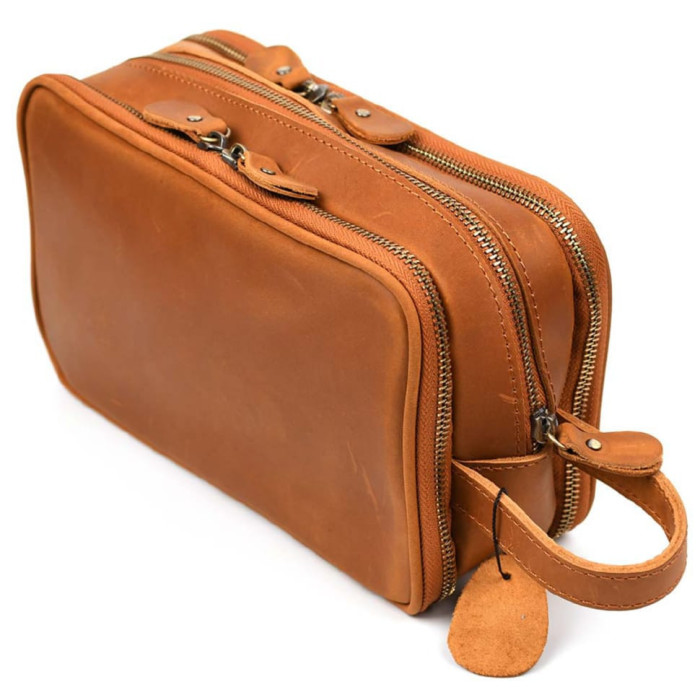 Хороша практична косметичка із високоякісної натуральної шкіри з відмінними експлуатаційними характеристиками. Має просторе головне відділення, яке закривається на надійну блискавку. Збоку є шкіряна ручка для перенесення виробу в руках. Запакована косметичка у чохол.