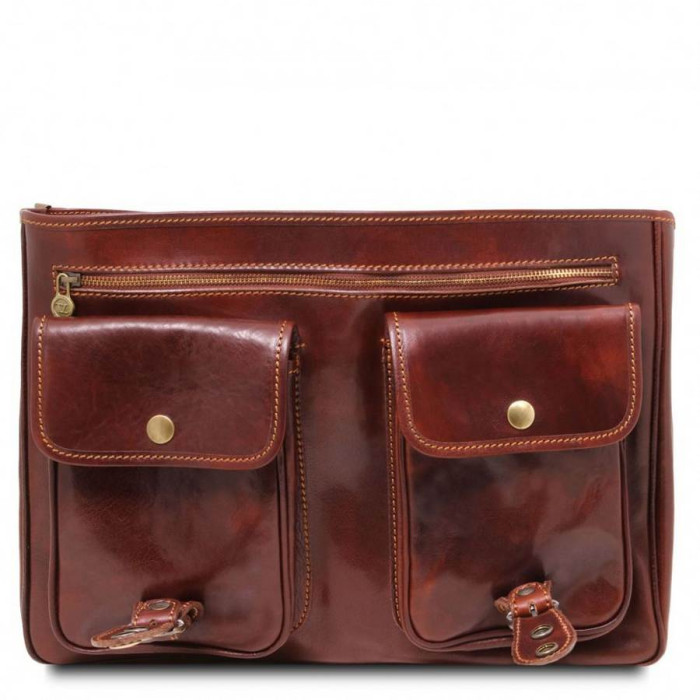Портфель чоловічий Tuscany Leather Modena - це італійське твір мистецтва. Його головною перевагою вважається місткість і функціонал. Модель має пару внутрішніх кишень і 2 відкритих накладних кишені для телефону, канцелярії. Вони закриваються на магнітні кнопки, декоровані пряжками. Ефектно виглядає латунна фурнітура, яка надає благородний вік серії Modena.