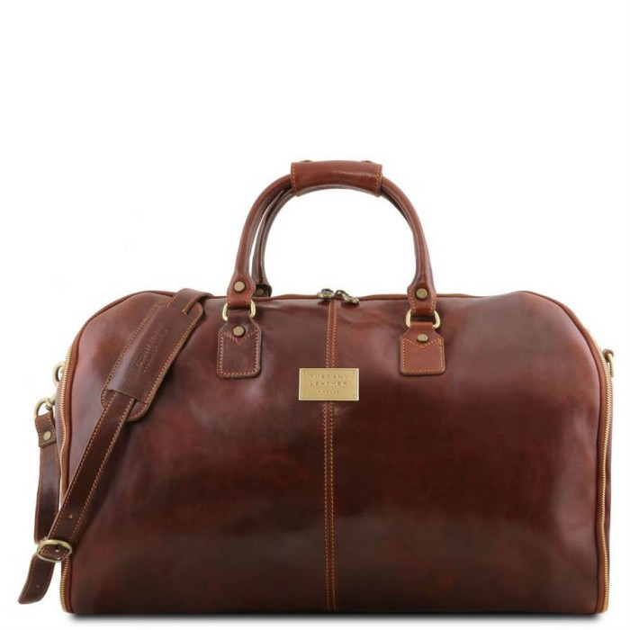 Італійський бренд Тоскана пропонує для далеких поїздок ідеальну дорожню сумку з багатофункціональними відділами і кишенями. 100% натуральна теляча шкіра. Спеціальна просочення рослинного дублення. Фірмова підкладка з міцного бавовни.