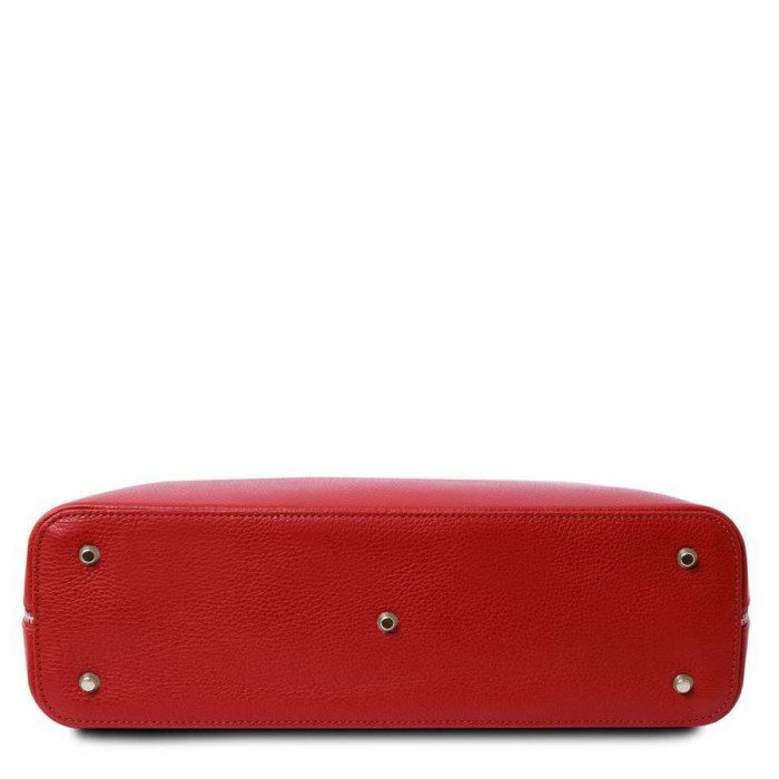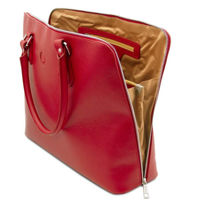 Склад: Текстурована теляча шкіра, Polyester lining - Features: Semi-rigid structure, 2 відділення - Зовнішня частина: Захисні металеві ніжки на дні, Кишеня на спині із закриттям - Внутрішня частина: Внутрішня кишеня на блискавці, 2 кишені, Відділення на блискавці - Плечовий ремінь: Шкіряний плечевий ремінь, Регульований плечевий ремінь, Знімний плечевий ремінь - Формат: Може поміститися Формат А4 - Металеві частини: Нікельована фурнітура - Застібка: Застібка на блискавці з трьох сторін - Ручки: Handle drop 16 cm Аксесуари: Мішечок для зберігання