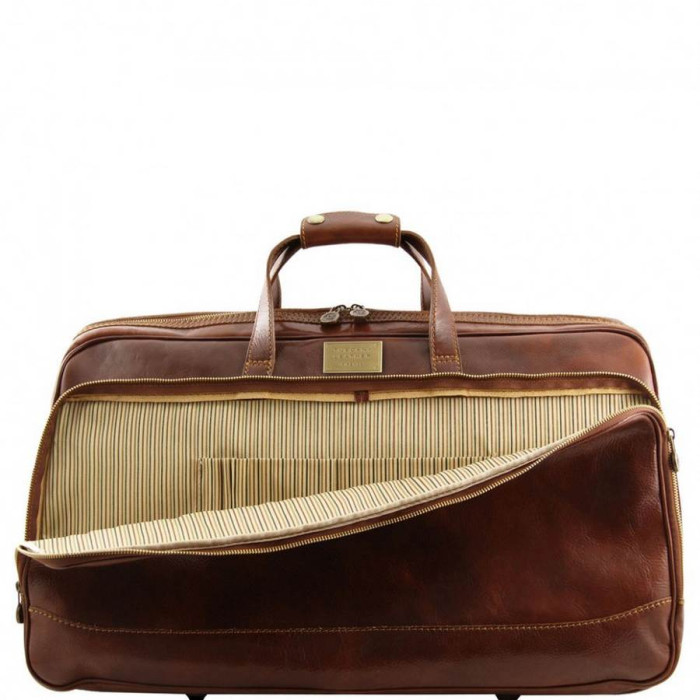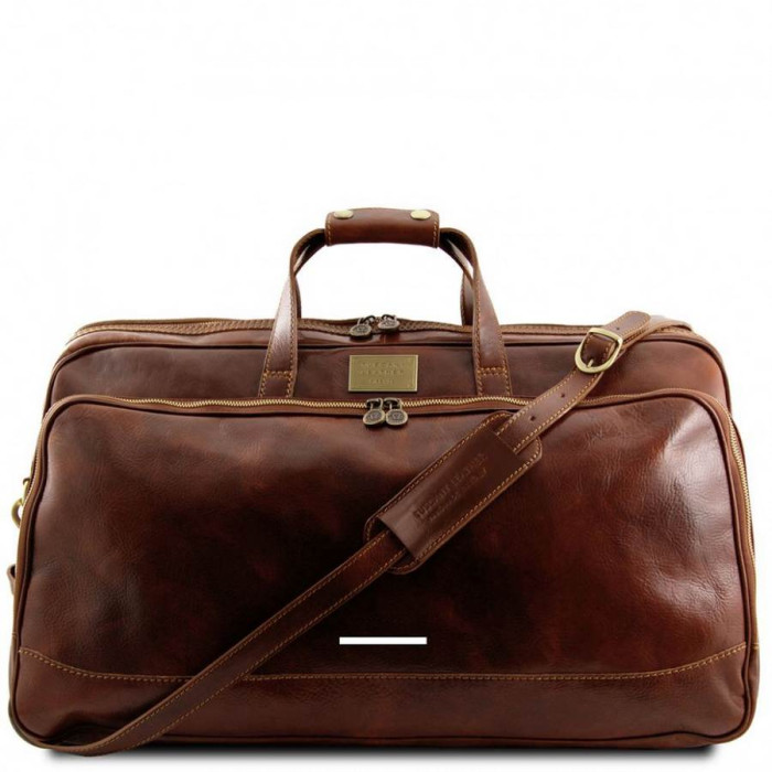 Шкіряна дорожня сумка Tuscany Leather Bora Bora або оригінальний weekender, бріфкейс, лептоп кейс це розкіш, яку ви можете дозволити собі для відпочинку або відряджень. Нова модель виготовлена з натуральної телячої шкіри рослинного дублення. Виріб демонструє одне містке відділення на металевій блискавці YKK і додаткова внутрішня кишеня. Сюди можна помістити 23-дюймовий гаджет. У комплекті йде: