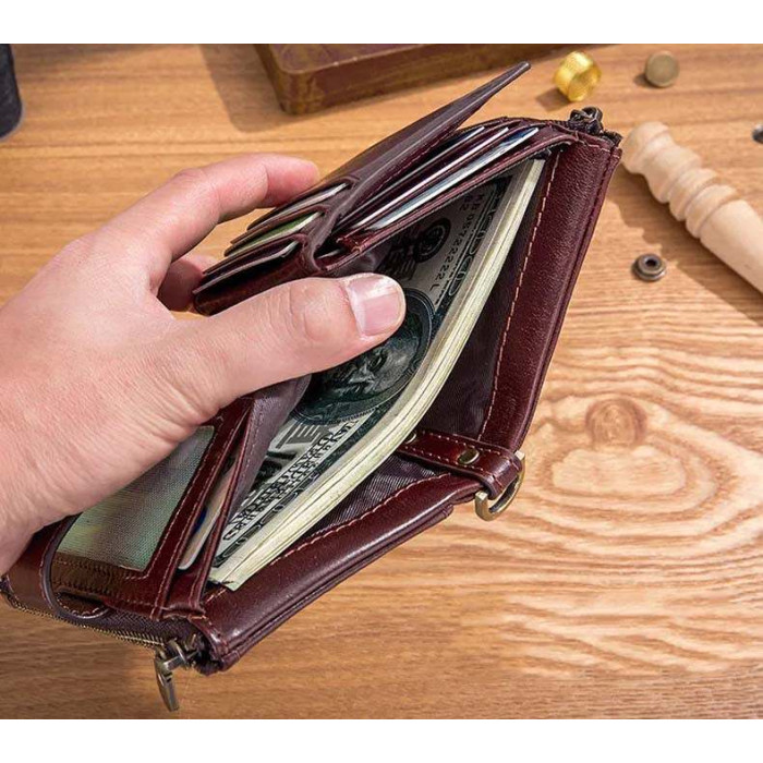 Чоловічий гаманець розкладний коньячний з ланцюжком TW080B Bull Чоловічий гаманець розкладний коньячний TW080B Bull.Прекрасний гаманець вміщає все необхідне - купюри, карти, дрібниці.
