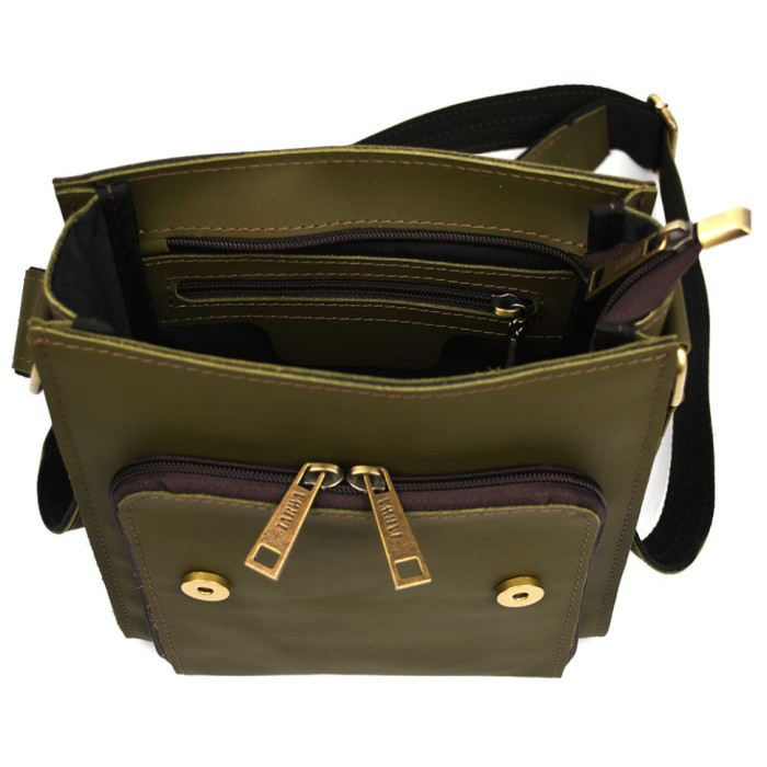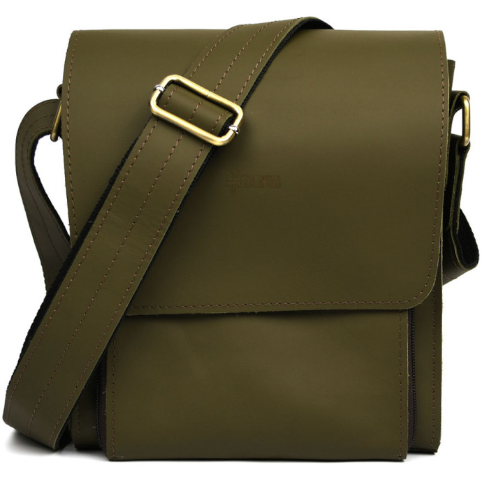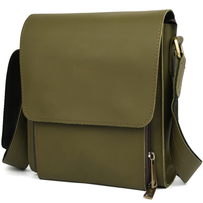 Зручна чоловіча сумка через плече, із клапаном ZE-3027-3md бренду TARWA, із натуральної шкіри кайзер зеленого (хаккі) кольору.