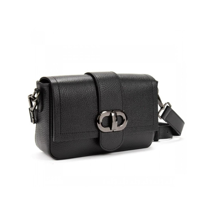 Сумочка Firenze Italy F-IT-9863A чорна із натуральної м'якої шкіри зернистої фактури.