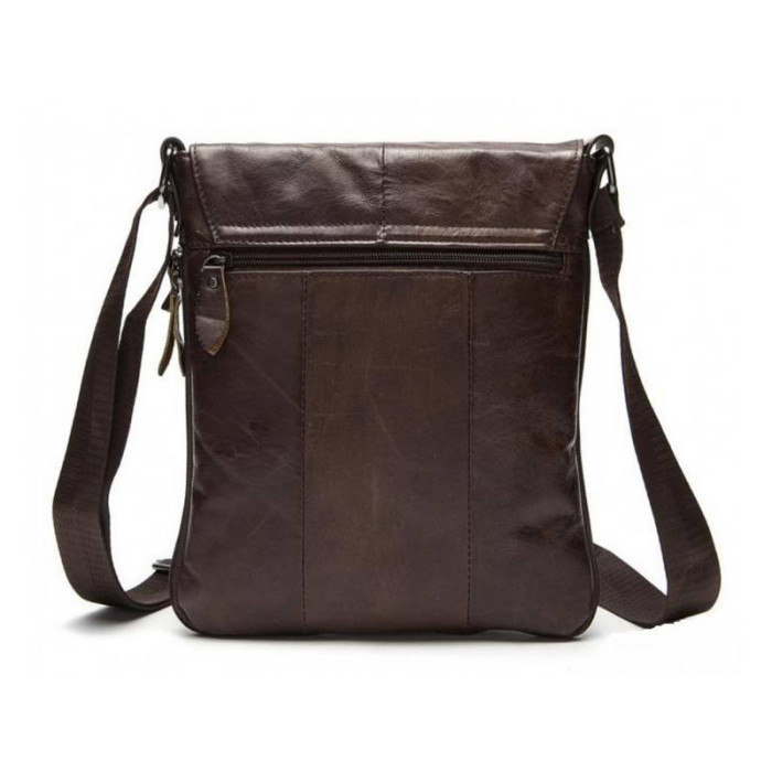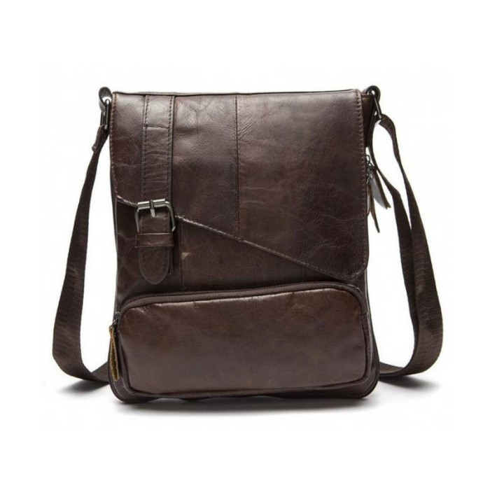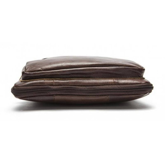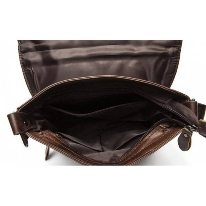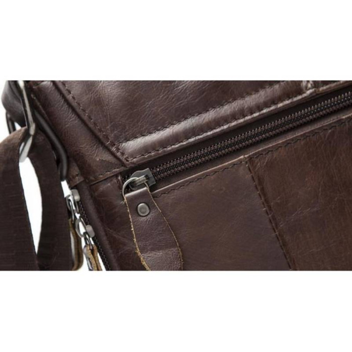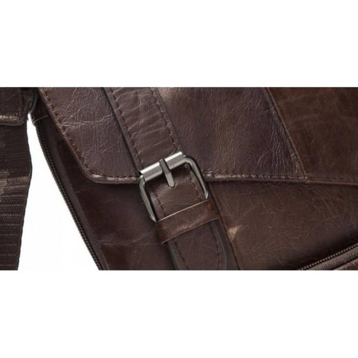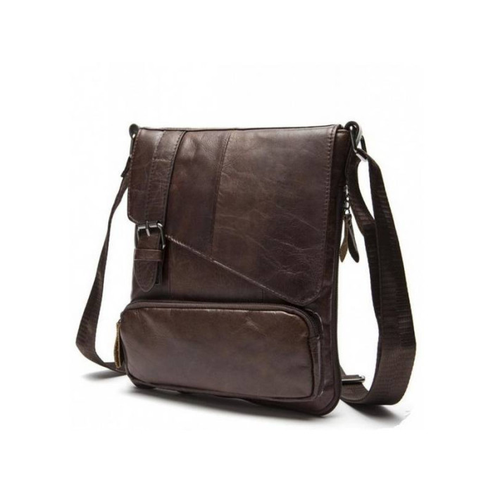 Стильна чоловіча сумка через плече від бренду Bexhill виконана з якісної телячої шкіри красивого коричневого кольору. З лицьового боку месенджер отримав невелику накладну кишеню на блискавичній застібці для швидкого доступу до потрібних речей. Закривається дана чоловіча сумка за допомогою клапана-кришки на двох кнопках. Під клапаном-кришкою є одне відкрите відділення, а також основне відділення, що закривається на змійку. Усередині основного відділення є кілька відкритих і закритих кишеньок. На тильній стороні є ще одна кишенька на блискавці. Крім того, ширина даного мессендера може збільшуватися за рахунок вшитої поздовжньої блискавки. Носиться аксесуар на плечовому текстильному ремені з регулятором довжини. Ця шкіряна чоловіча сумка не залишить Вас байдужими!