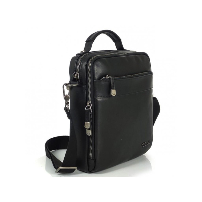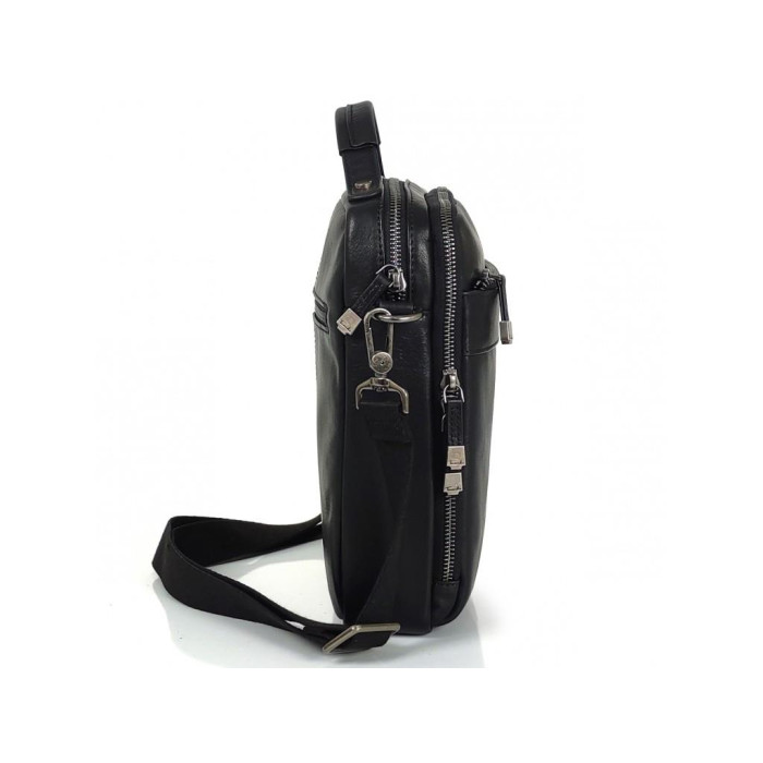 Чоловічий месенджер через плече Tavinchi TV-s-SM8-S010A виконаний з натуральної гладкої шкіри чорного кольору. Розміри складають 22 х 25 х 7 см.Особливості: має два відділення на блискавці.