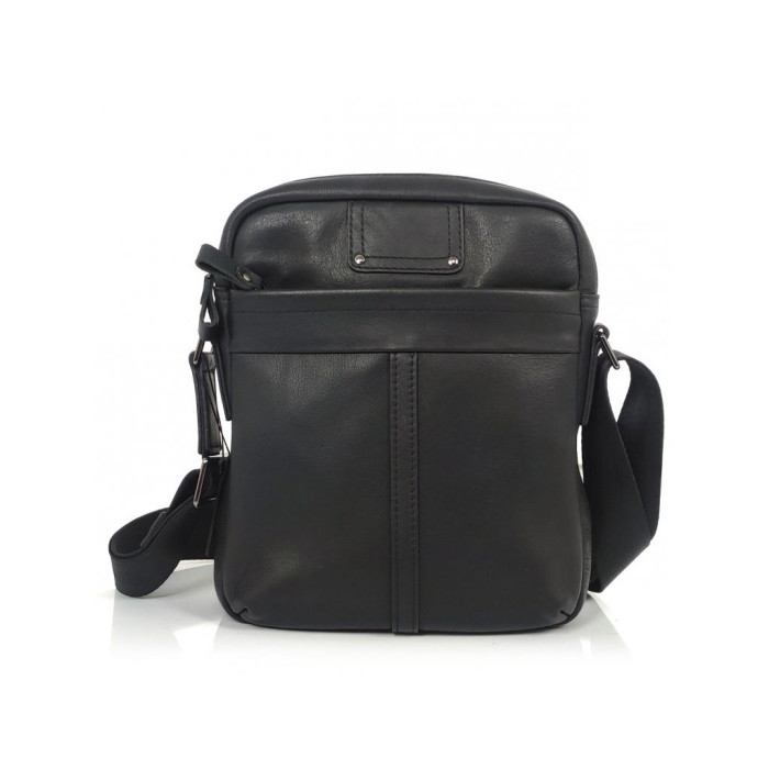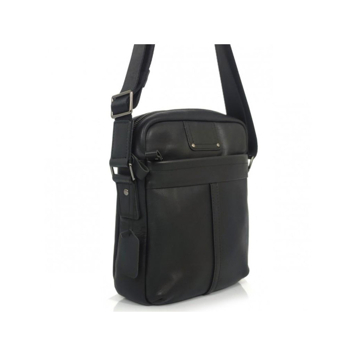 Чоловічий месенджер Tiding Bag S-JMD10-8017A із натуральної гладкої шкіри чорного кольору. Розміри становлять 22 х 24 х 5 см.