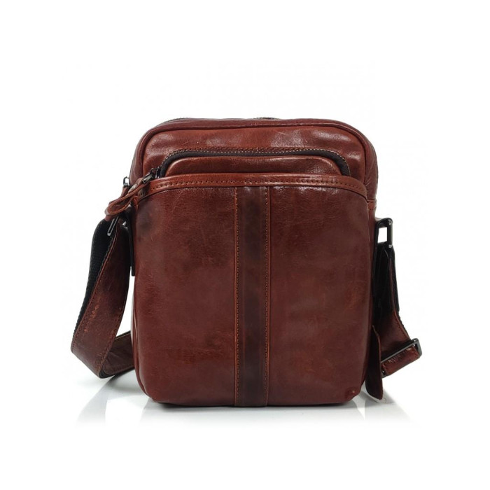 Чоловіча сумка Tiding Bag S-JMD10-5010C виготовлена із натуральної шкіри коричневого кольору. Особливості: розміри сумки становлять 18 х 22 х 7 см. Месенджер має два відділення, які закриваються на блискавку. Всередині головного відділення є дві невеликі кишені, одна на блискавці інша відкритого типу.