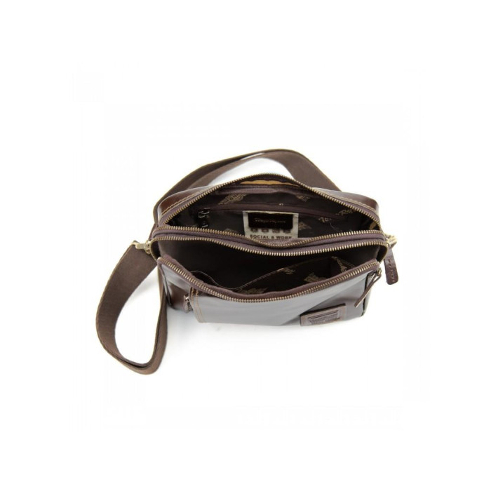Сумка через плече Ruff Ryder RR-4161-1DB із натуральної шкіри у коричневому кольорі, гладка глянсова шкіра.