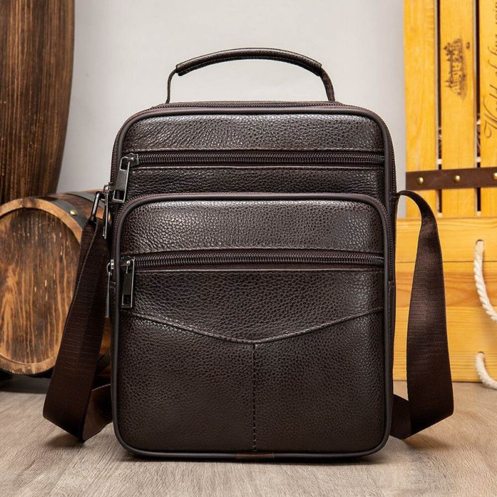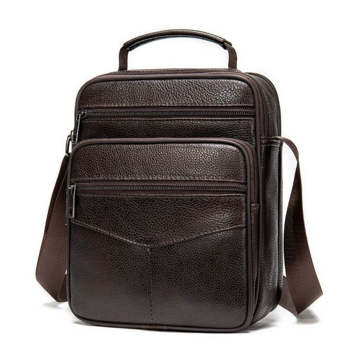 Зручна чоловіча сумка середнього розміру відмінно підійде на кожен день. Аксесуар має два відділення, що робить модель ще більш популярною серед наших клієнтів. Сумка виконана з натуральної шкіри найвищої якості і проноситься далеко не один рік. Виріб ідеально виділить вас з натовпу. Сумка буде прекрасним подарунком для близької людини.