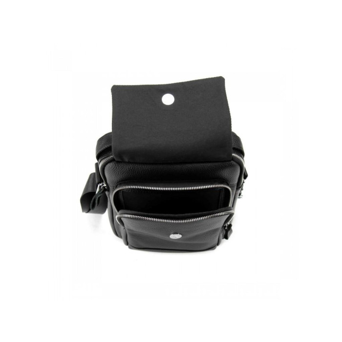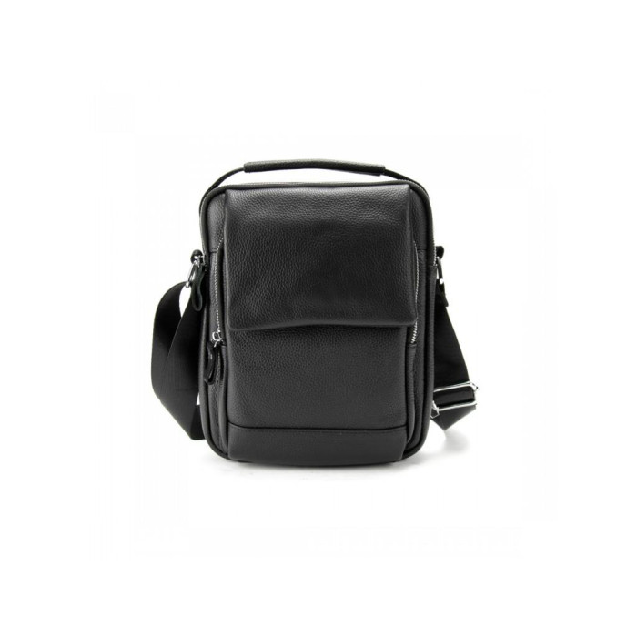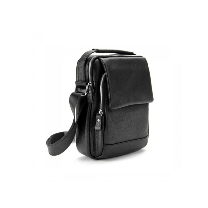 Сумка через плече Tiding Bag A25F-FL-9747A з натуральної шкіри чорного кольору, зернистої фактури.