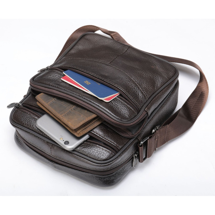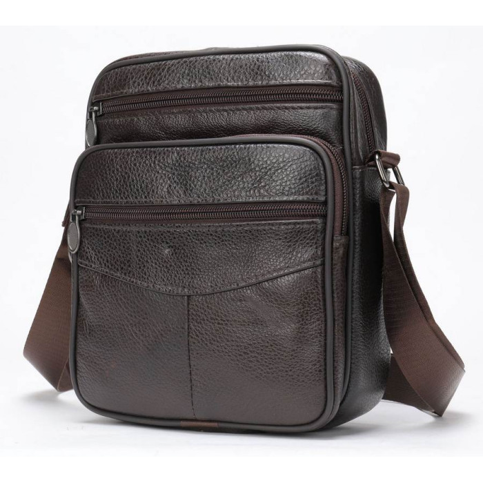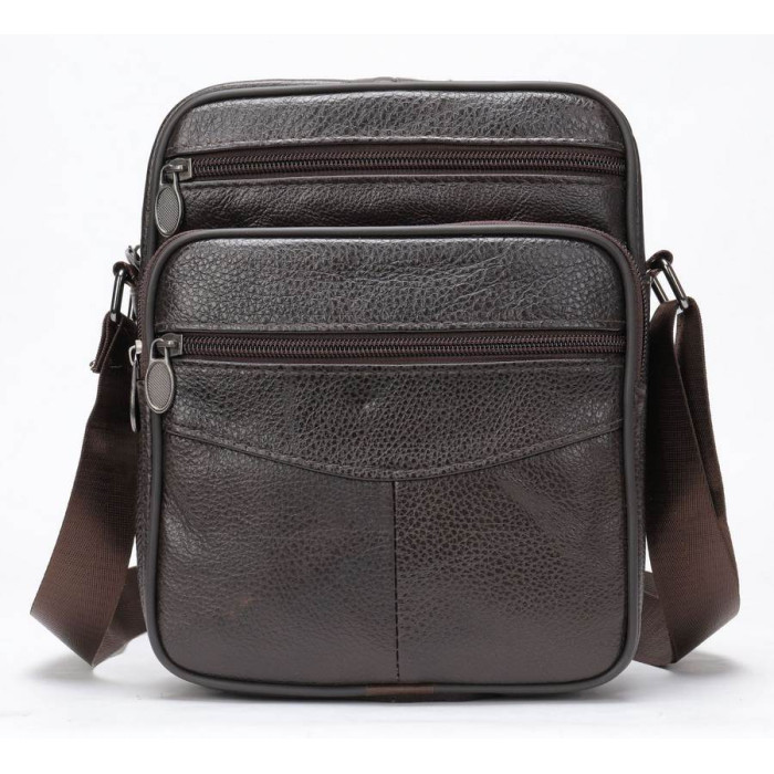 Якісна чоловіча сумка з натуральної шкіри. Виріб виконаний з зернистої шкіри коричневого кольору. Усередині аксесуара щільна текстильна підкладка коричневого кольору. Сумка буде вашим ідеальним варіантом на кожен день. Модель дуже зручна. Класичний дизайн ніколи не вийде з моди. Така сумка підійде під будь-які речі з вашого гардеробу. Модель доповнена якісною фурнітурою в дизайн виробу.