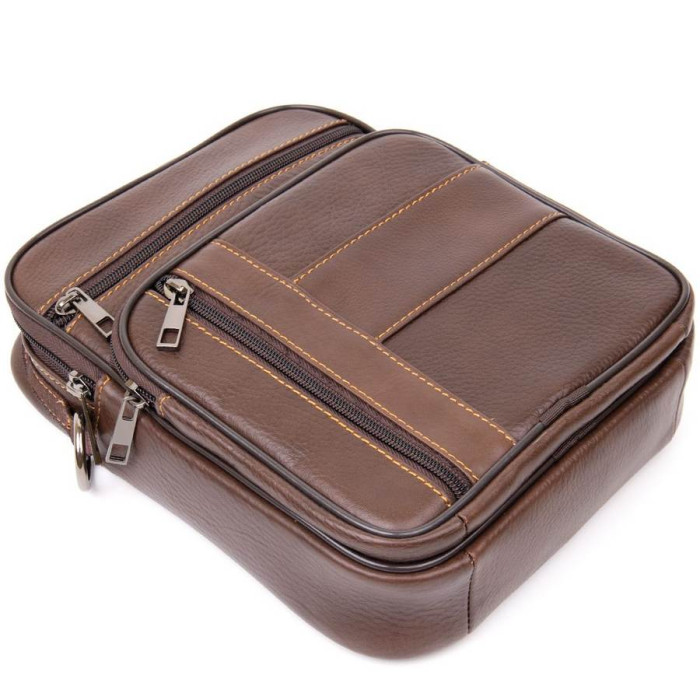 Містка сумка для чоловіків. Аксесуар ви можете носити як в руках, так і на плечі. У своєму дизайні аксесуар має світлу рядок. Усередині сумки якісна текстильна підкладка. Доповнено месенджер якісною фурнітурою. Сумка ідеально підійде для роботи або навчання, а також для ділових зустрічей або зустрічей з друзями. Месенджер - ідеальний варіант сумки для сучасного чоловіка. Виріб має весь необхідний функціонал.