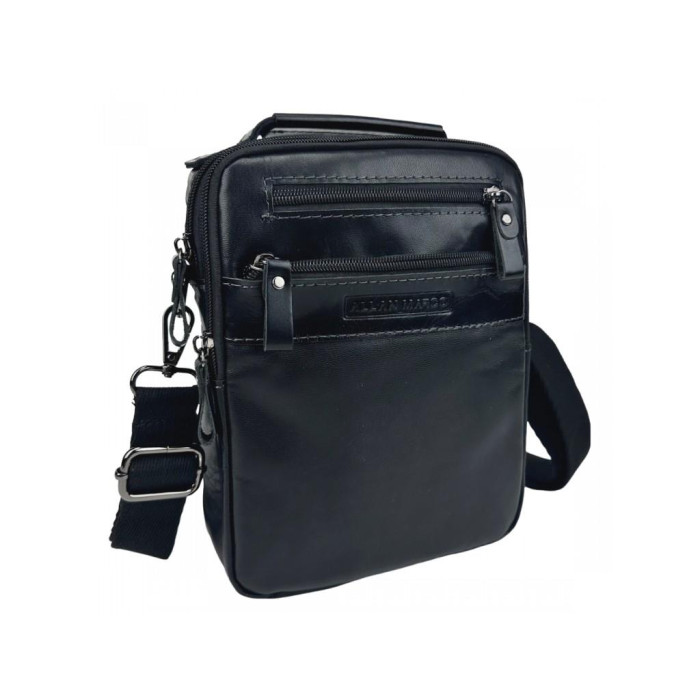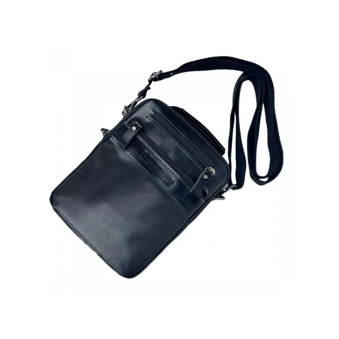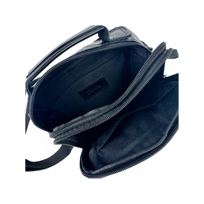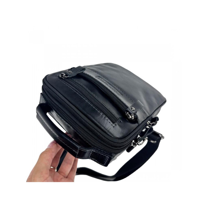 Чоловіча шкіряна чорна сумка месенджер із ручкою