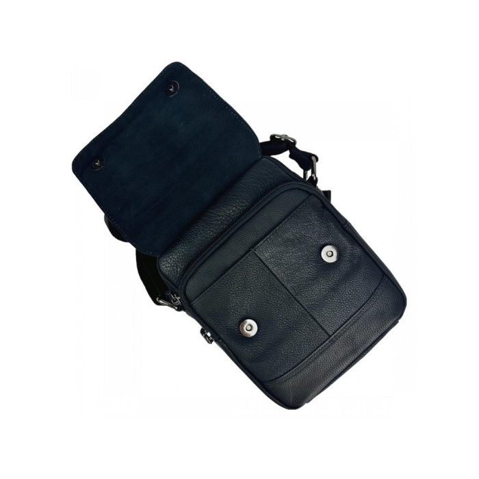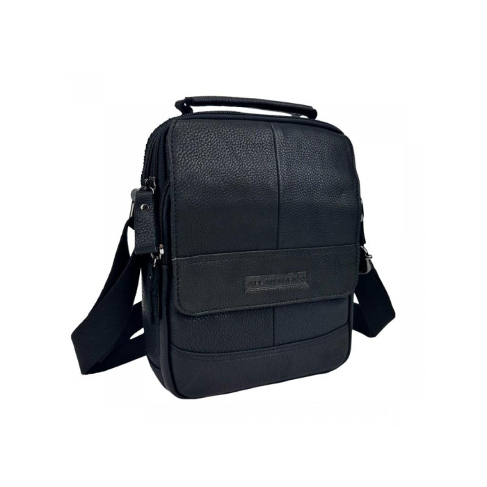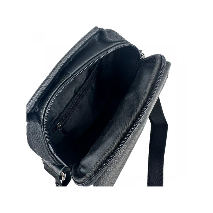 Чоловіча шкіряна сумка чорного кольору із зернистої натуральної шкіри.