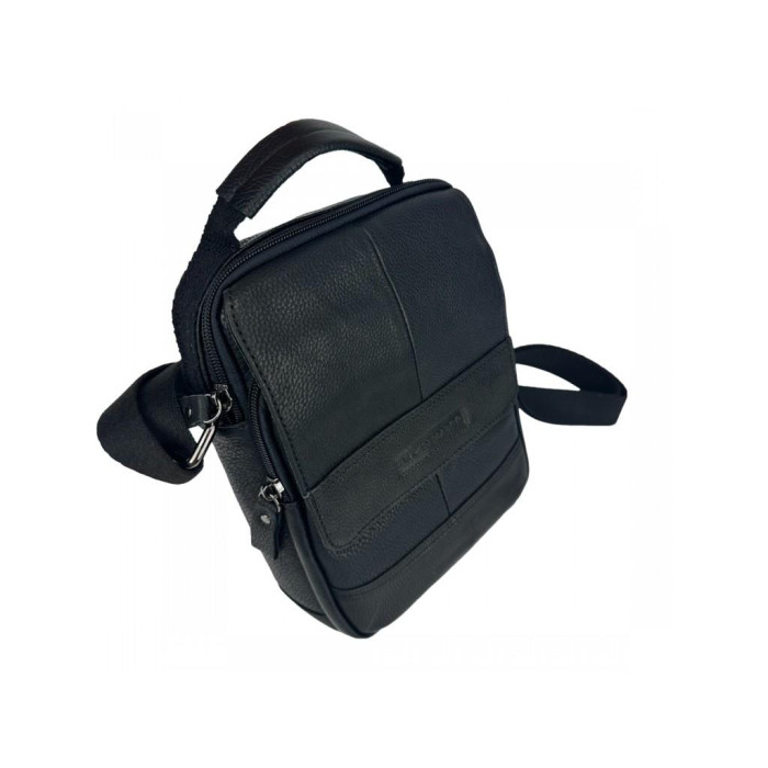 Чоловіча шкіряна чорна сумка месенджер із ручкою