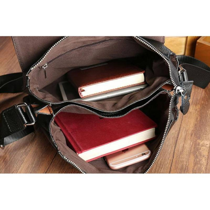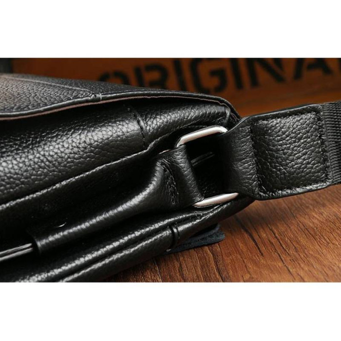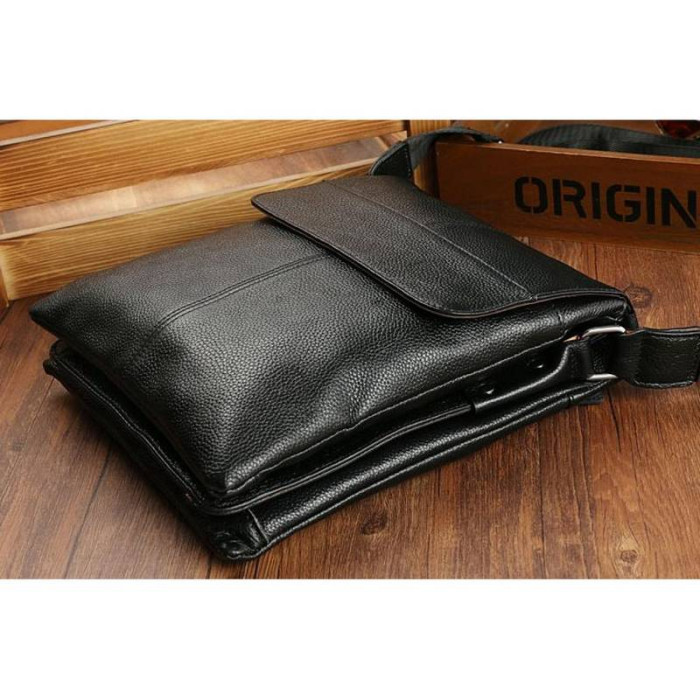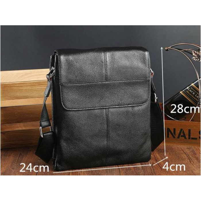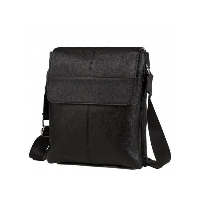 Стильний чоловічий чорний месенджер від бренду Tiding Bag виготовлений з натуральної якісної шкіри.