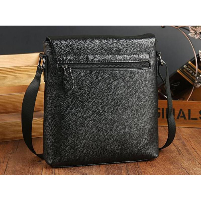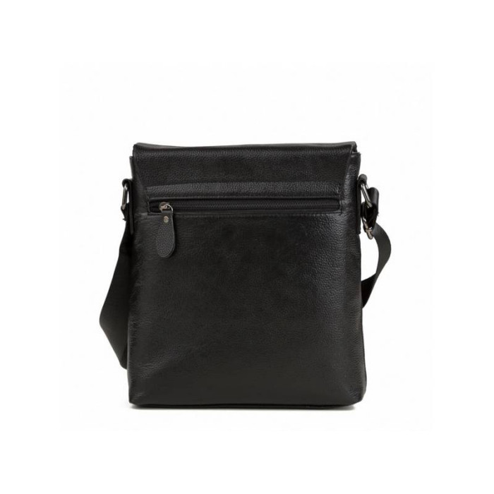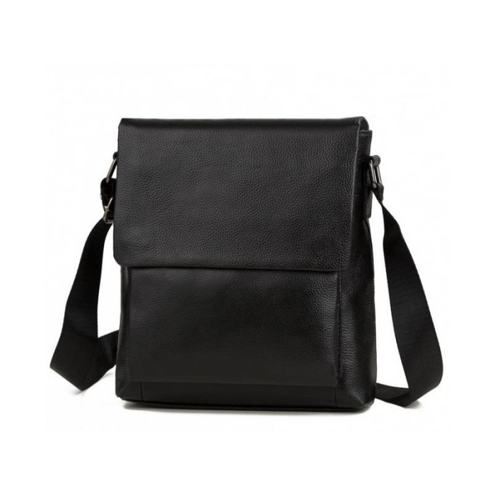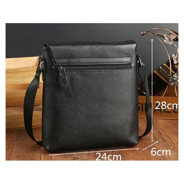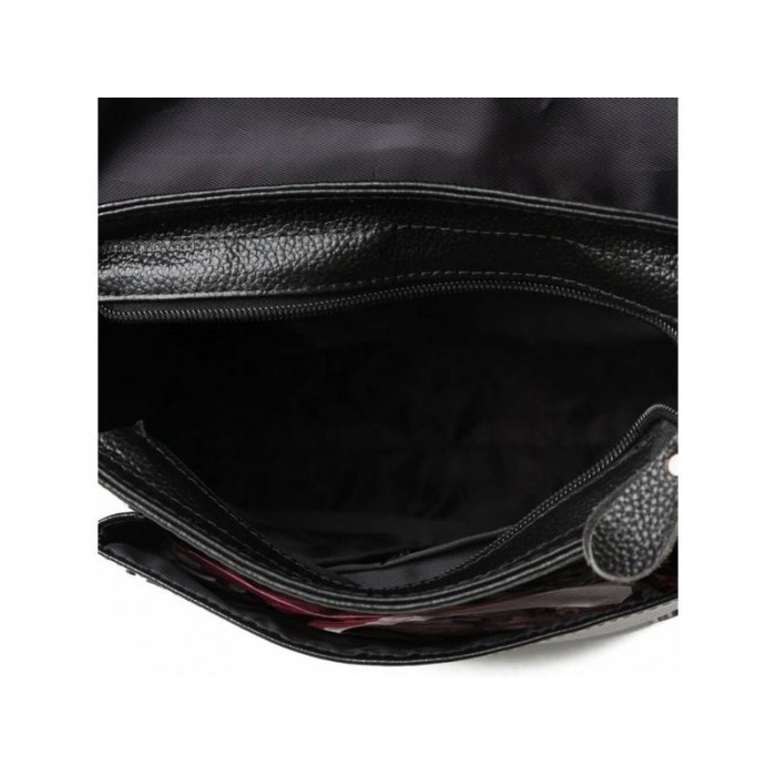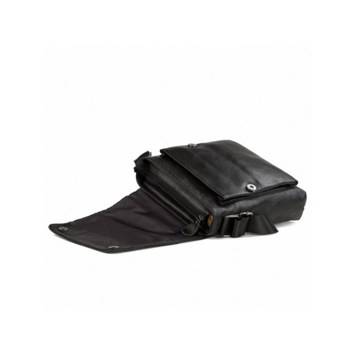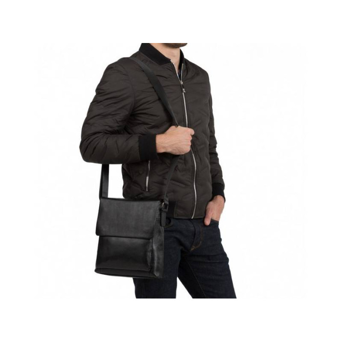 - класичний чорний месенджер з натуральної шкіри вмістило основне відділення з клапаном на магнітній кнопці, з зручними кишенями всередині;