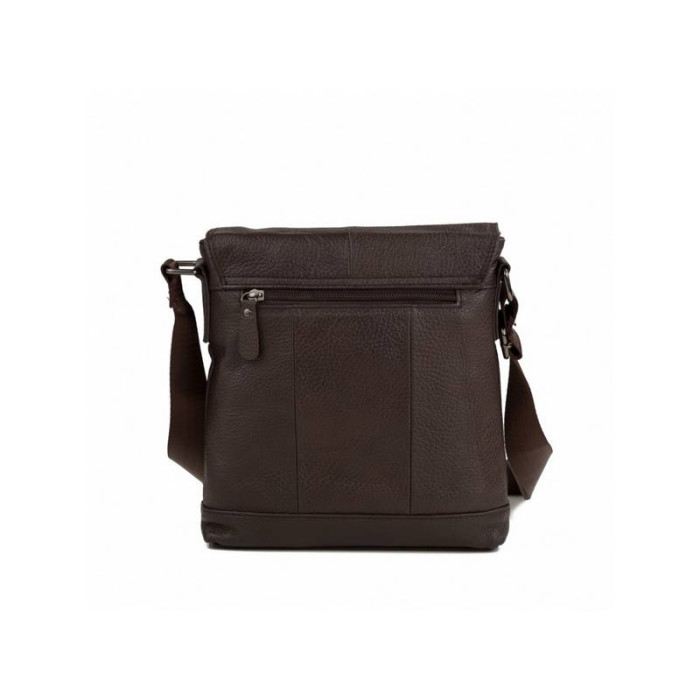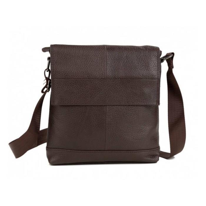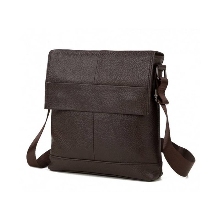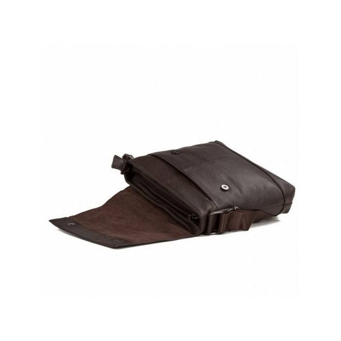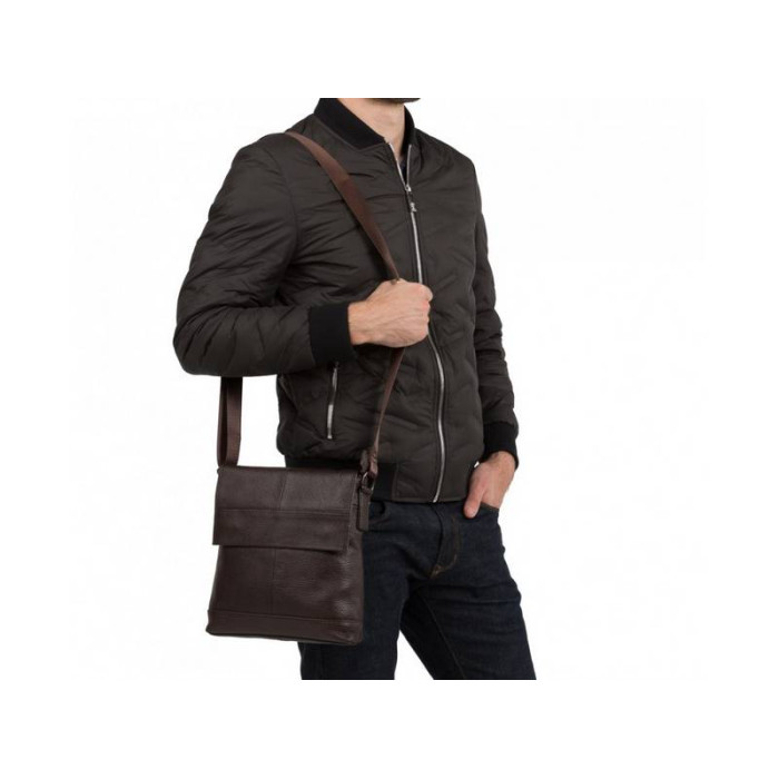 - гарний коричневий чоловічий месенджер отримав якісну металеву фурнітуру і міцну текстильну регульовану ручку;