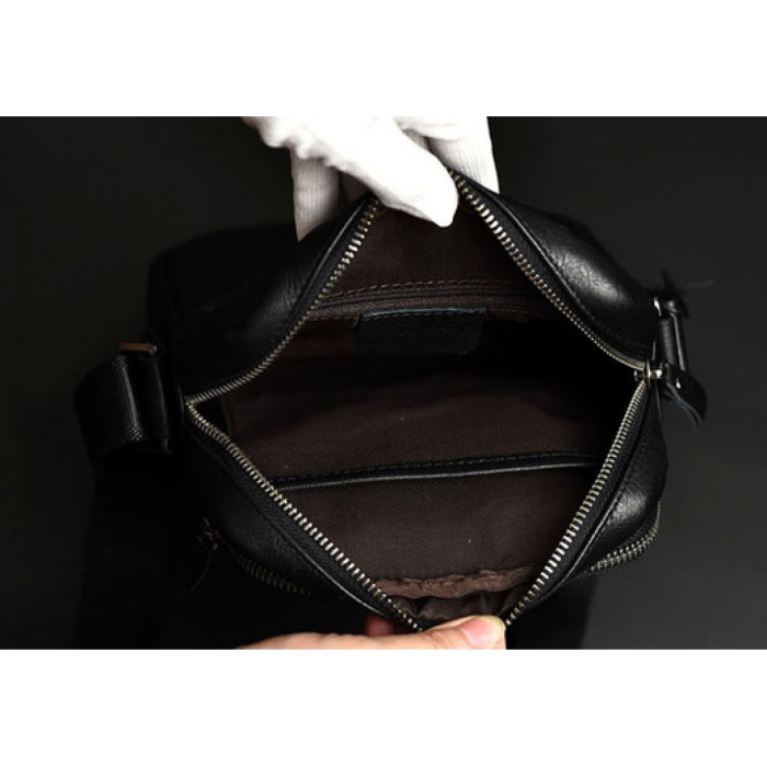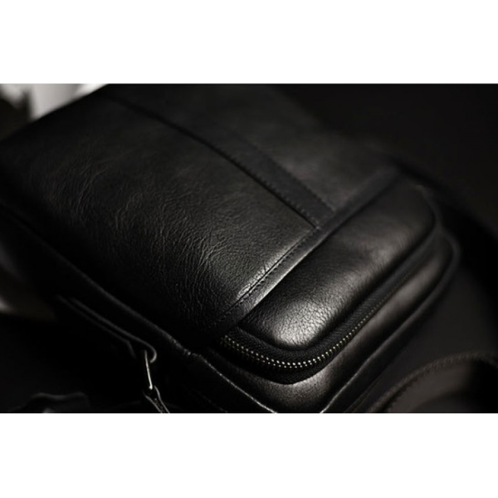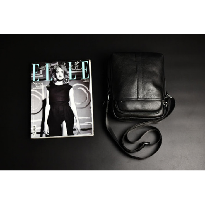 - чорний месенджер оснащений одним відкритим кишенею і одним відсіком з блискавкою, на лицьовій частині;