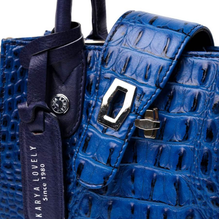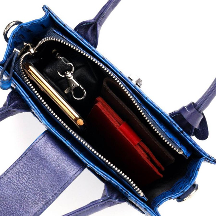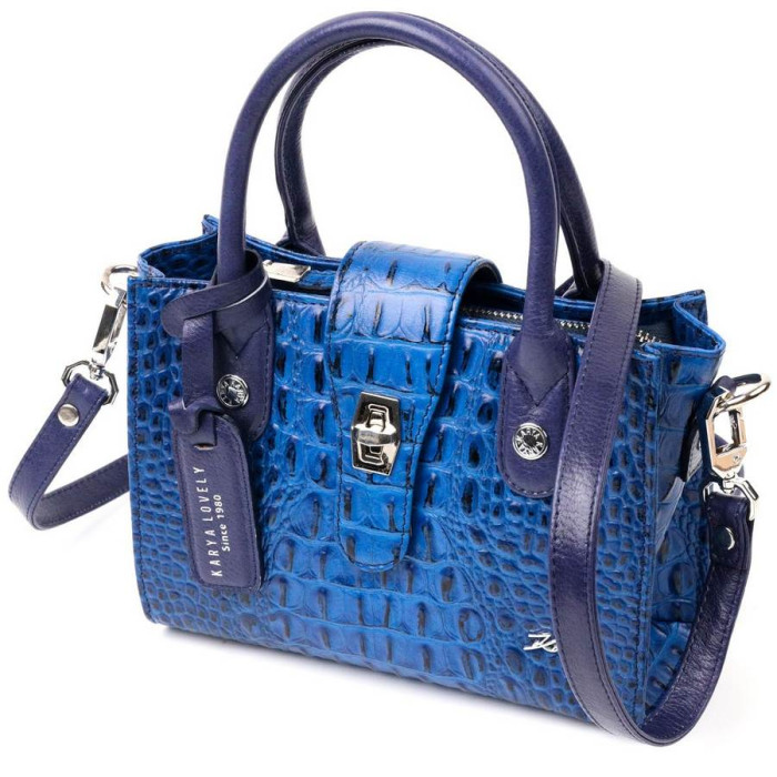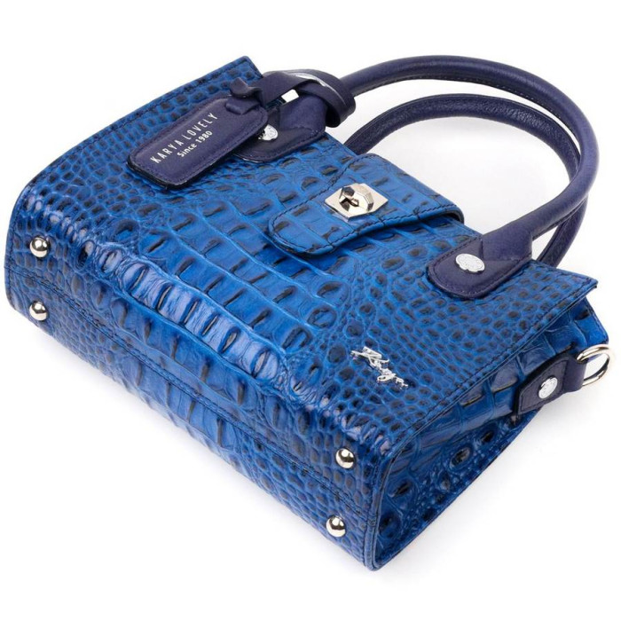 Красива невелика сумка жіноча з натуральної шкіри, з тисненням під рептилію. Всі матеріали з яких виконано виріб, шкіра, фурнітура, підкладка - високої якості з підвищеними показниками стійкості до різного зносу. Колір цієї сумки – синій, що дуже добре підкреслює індивідуальність та стиль сучасної жінки.
