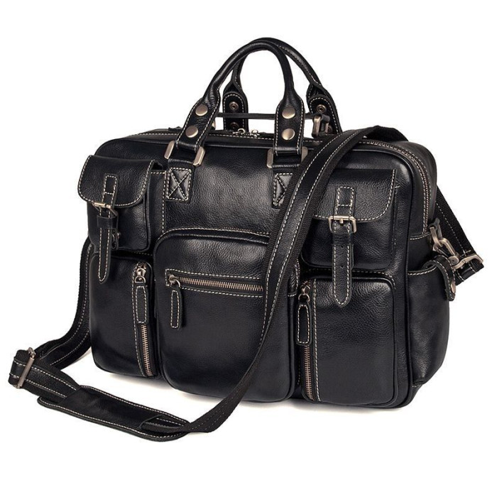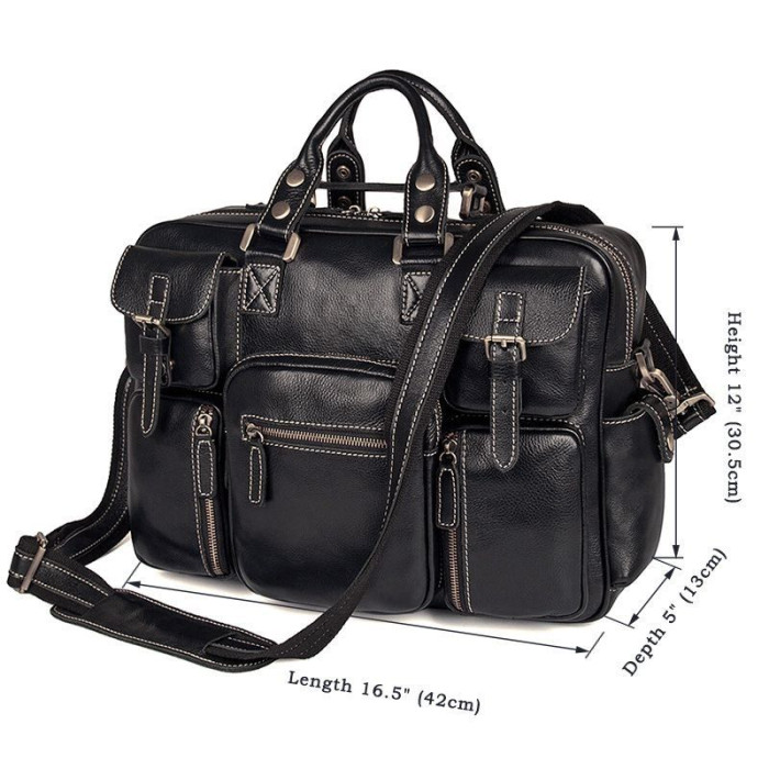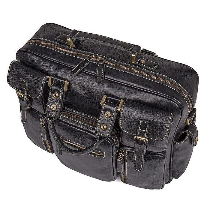 Багатофункціональна чоловіча шкіряна сумка з натуральної високоякісної шкіри. Аксесуар прошитий міцною ниткою білого кольору. Колір фурнітури: мідь. Сумка виглядає дуже стильно і красиво. Вона має безліч кишень і відділень, що надзвичайно важливо для сучасної людини. Носити сумку можна за допомогою зручних шкіряних ручок в руці, а також через плече за допомогою плечового ременя. Завдяки своїй високій якості носитися сумка буде довго і при цьому збереже свій презентабельний зовнішній вигляд.
