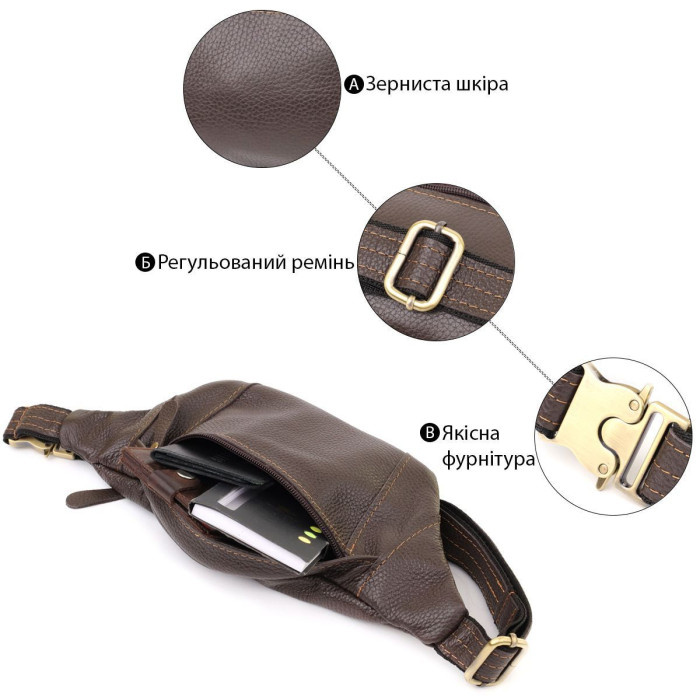 Сумка-бананка в коричневій шкірі флотар - це не просто аксесуар, а відображення смаку, практичності та впевненого стилю.