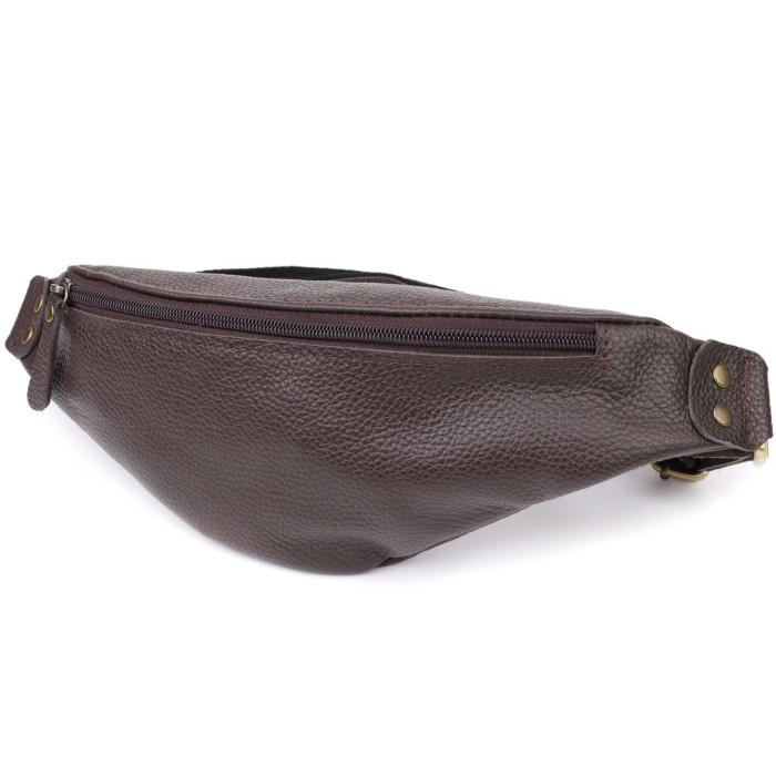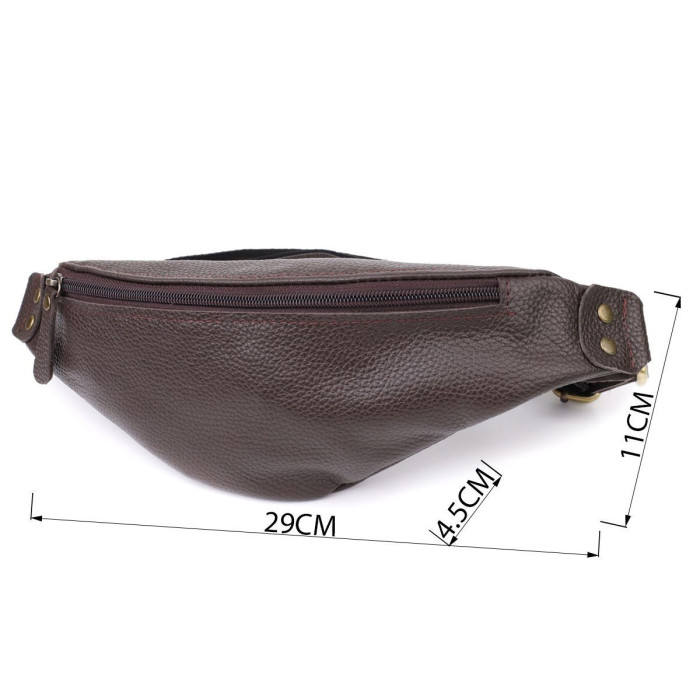 Компактна, але містка: основне відділення на блискавці вміщує документи, смартфон, ключі та гаманець. Регульований ремінь зі шкіри та міцної тканини дозволяє зручно носити аксесуар на поясі або через груди, залишаючи вільними руки.