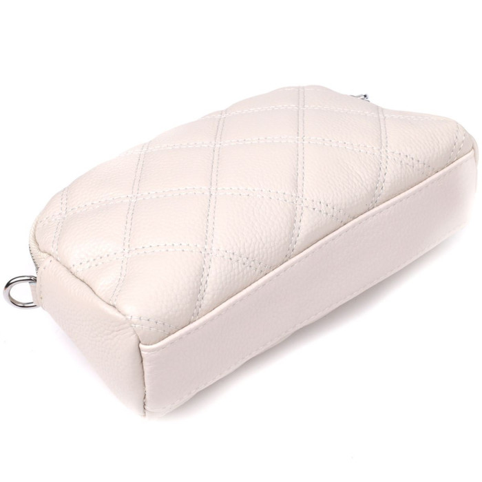 Білий відтінок шкіри надає аксесуару особливої витонченості та універсальності - така сумка легко доповнить як діловий, так і повсякденний образ. Фурнітура сріблястого кольору стильно контрастує із чистотою білого тону, наголошуючи на сучасному характері виробу.