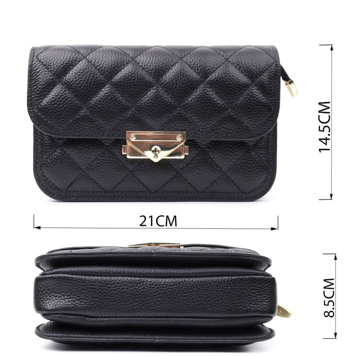 Вечірня сумка для жінок з натуральної шкіри флотар, яка невибаглива у догляді та довго носиться. Виріб повністю прошито стильними ромбами, які ніколи не виходять з моди. Аксесуар складається з основного відділення, кишені відкритого типу та потайної кишені на блискавці всередині, а також чотирьох кишень під клапаном. Носити сумку можна в руці, під рукою, на плечі і через плече, для цього є шкіряний ремінь, що знімається. В аксесуарі використано якісну фурнітуру кольору жовтого золота. Універсальний варіант сумки на вечір та на кожен день.