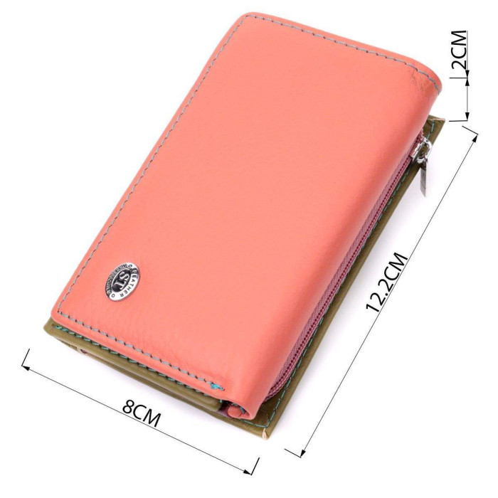 Ідеальне жіноче портмоне в три складання з натуральної шкіри найвищої якості. Перше, що впадає в око це колірне рішення, замість однотонного аксесуара ми маємо різнокольоровий, який містить два основні зовнішні кольори і кілька додаткових всередині. Шкіряне портмоне дуже практичне і служить досить довго. Аксесуар складається з двох містких кишень для купюр, кишені на блискавці через всю довжину, п'яти осередків для карт, прозорого віконця для пропуску та зовнішньої кишені на блискавці з перегородкою, що чудово прослужить для монет. Портмоне доповнено надійною фурнітурою. Укомплектований гаманець у фірмову картонну коробку білого кольору.