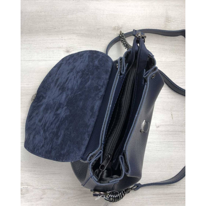 Всередині сумки щільна підкладка, дві кишені: відкрита і на блискавки. Зовні є кишеня для дрібних предметів.