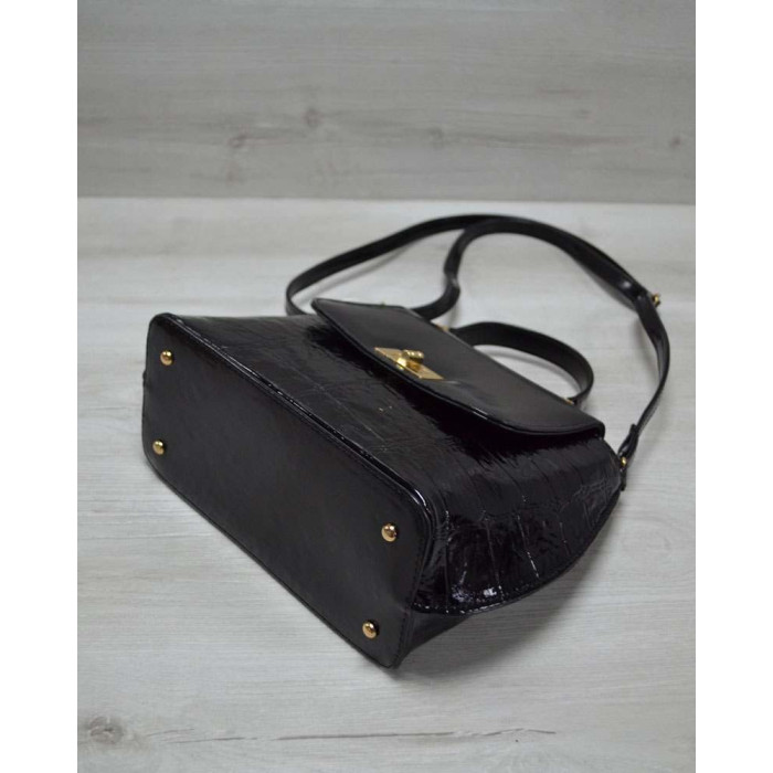 Клатч чорний лаковий крокодил - молодіжна сумка WeLassie, виготовлена з штучної шкіри. Чорний лаковий клатч має одне відділення на блискавки. Всередині є кишенька для мобільного телефону і кишеня для дрібних предметів , а також є розділове відділення. Є зовнішня кишеня для дрібних предметів. Ручки міцні - висота їх розрахована, щоб носити сумку в руці, або на плечі.