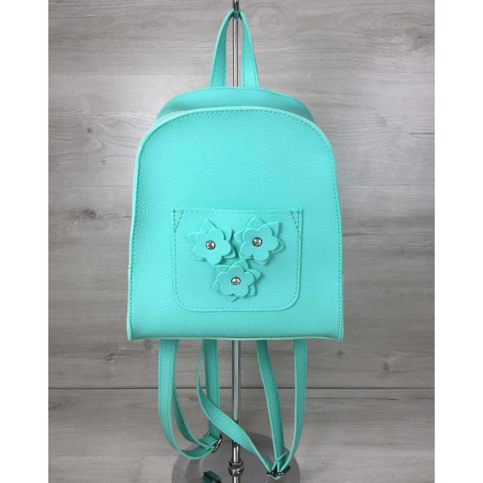 Жіночий молодіжний рюкзак з квітами, виготовлений зі штучної шкіри. Має одне відділення та зовнішню кишеню для дрібних предметів. Всередині рюкзак без підкладки, має одну внутрішню кишеню. Ручки регулюються під різну довжину.