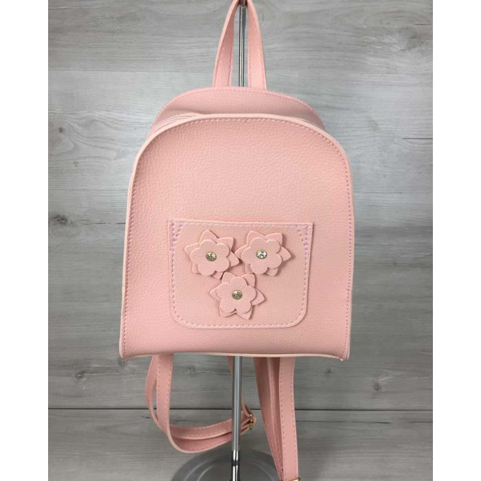 Жіночий молодіжний рюкзак з квітами, виготовлений зі штучної шкіри. Має одне відділення та зовнішню кишеню для дрібних предметів. Всередині рюкзак без підкладки, має одну внутрішню кишеню. Ручки регулюються під різну довжину.