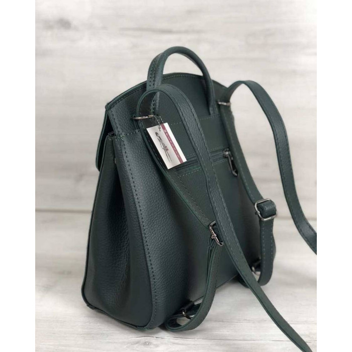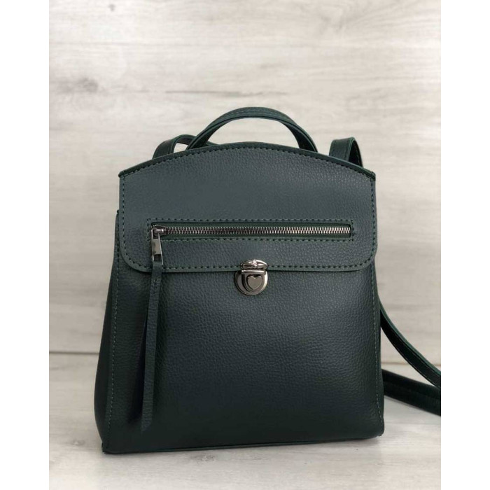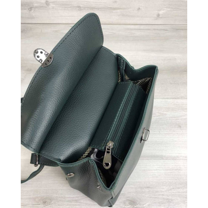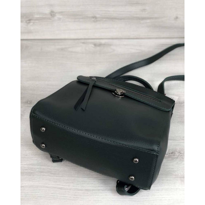 Стильний жіночий молодіжний сумка-рюкзак Деніс виготовлений зі штучної шкіри високої якості. Еко-шкіра морозостійка, еластична, щільна. Основне відділення застібається на блискавку і замочок. Всередині сумки є дві кишені: відкрита і на блискавки. Спереду рюкзака на кришці є кишеня на блискавці. Також є кишеня для дрібних предметів.