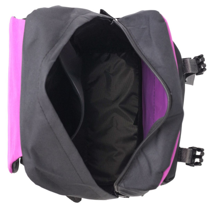 Місткий рюкзак на одне велике відділення чорного кольору, з яскравою фіолетовою вставкою. Рюкзак дуже місткий. Виріб має дуже практичний функціонал. Рюкзак підійде для подорожей, відряджень та міських прогулянок. Незважаючи на свій розмір, рюкзак не важкий. Закривається рюкзак на блискавку та фастекси, фурнітура дуже якісна. Текстильний рюкзак – бюджетне рішення для вашого комфорту.