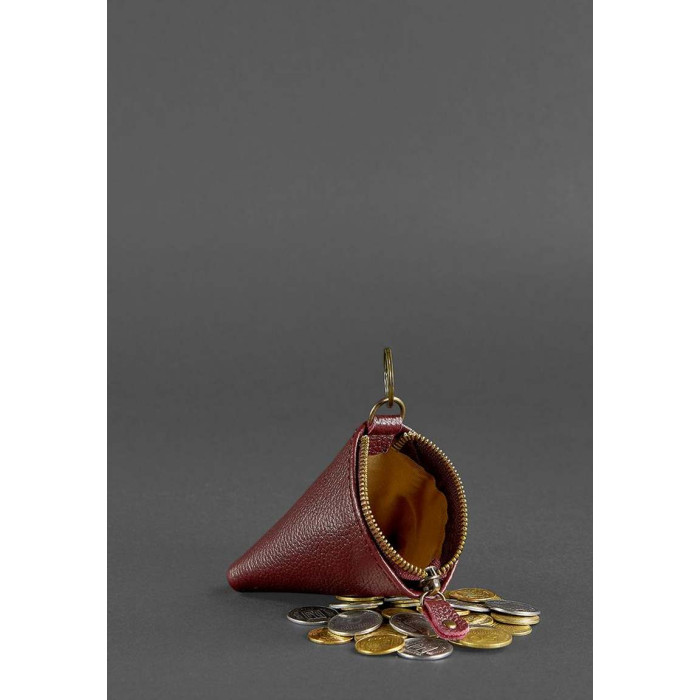 Набридла дрібниця, яка розсипається по сумці і постійно втрачається? Обзаведіться монетницею! Вона не тільки допоможе упорядкувати всі монети і дрібні предмети, але і стане відмінною прикрасою. Так як монетниця піраміда в бордовому кольорі володіє неймовірним шармом і благородством. А за допомогою металевого кільця монетницу можна чіпляти до ключів, сумки і навіть до пояса.