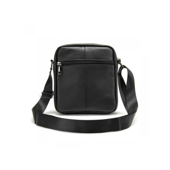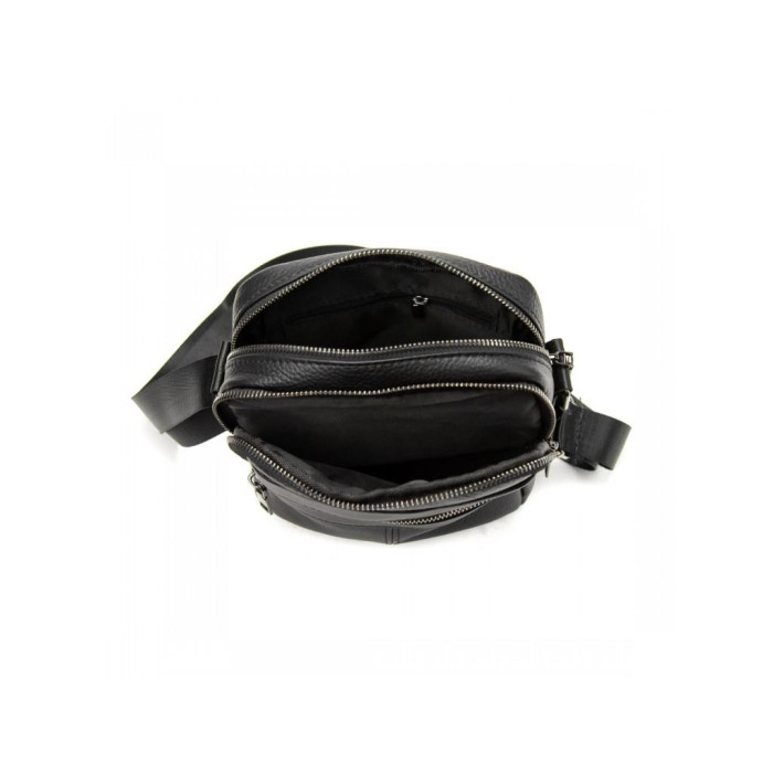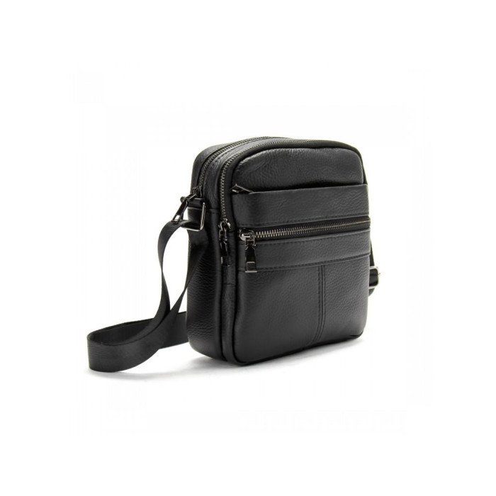 Сумка через плече Tiding Bag A25F-6625A-1 з натуральної шкіри чорного кольору, зернистої фактури.