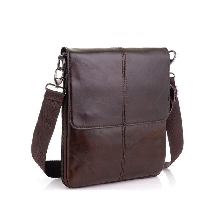 Чоловіча сумка через плече від компанії Bexhill виконана з натуральнoї м'якої телячої шкіри. Месенджер закривається за допомогою кришки-клапана на двох кнопках, під якою є додаткова відкрита накладна кишеня. З заднього боку сумки є кишеня на блискавці. Основне відділення розділено на частини перегородкою з тканини, також оснащено безліччю внутрішніх кишень. Ремінь тримається на міцних металевих карабінах, які в будь-який момент можна легко відстібнути, а довжина ременя регулюється фіксатором. Величезним плюсом даної сумки є те, що її дно можна розширити за допомогою поздовжньої блискавки. Даний месенджер створений спеціально для тих, хто надає перевагу лаконічності стилю: як в одязі, так і в аксесуарах. Шкіряна сумка гармонійно доповнить ваш повсякденний образ, не перевантажуючи його зайвими деталями: те, що потрібно для сучасної людини.