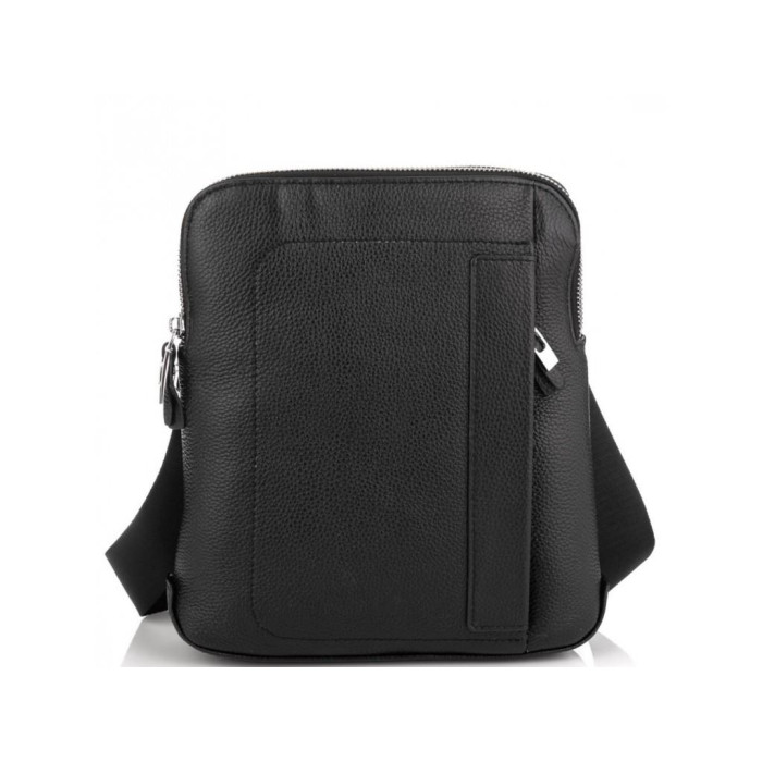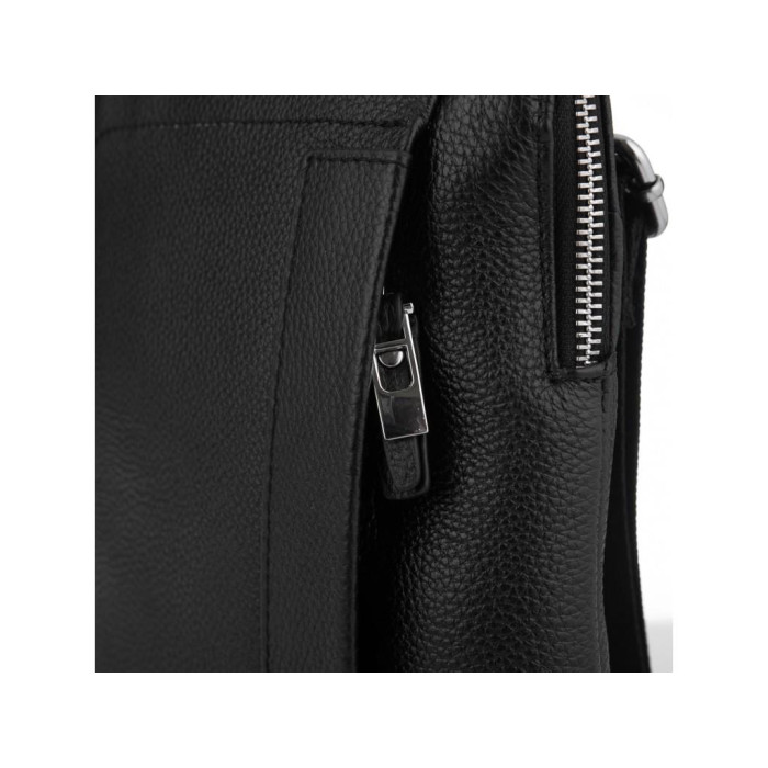 Шкіряна сумка Royal Bag в зернистій шкірі. Оснащена срібною, надійною фурнітурою, текстильним щільним ременем, який регулюється по довжині. Чоловіча сумка має одне основне відділення на блискавці. З лицьового боку вертикальна кишеня на блискавці, з тильного боку кишеня відкритого типу на магнітній кнопці. Усередині сумки є кишеня відкритого типу і кишеня на блискавці для дрібниць.