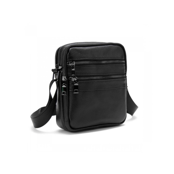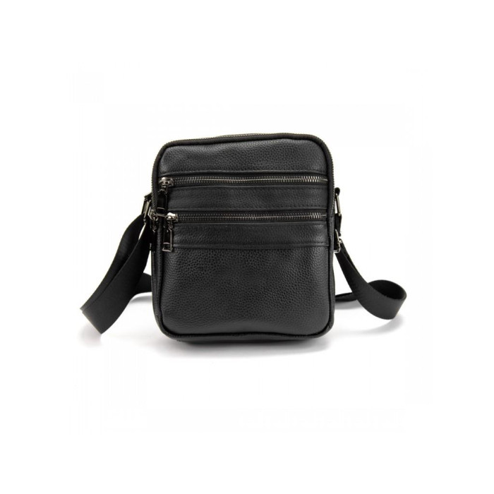 Сумка через плече Tiding Bag M56-3646A з натуральної шкіри в чорному кольорі, зернистої фактури.
